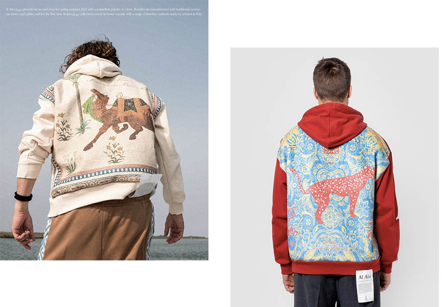 Each Al Ain Académie garment features handcrafted details that honour the rich textile heritage of the Middle East. The brand collaborates with artisan communities and workshops from Venice to the United Arab Emirates, preserving traditional techniques such as Al Ain embroidery and Bedouin hand-weaving. These collaborations are central to the brand’s creative identity, celebrating cultural legacy through craftsmanship and storytelling.
